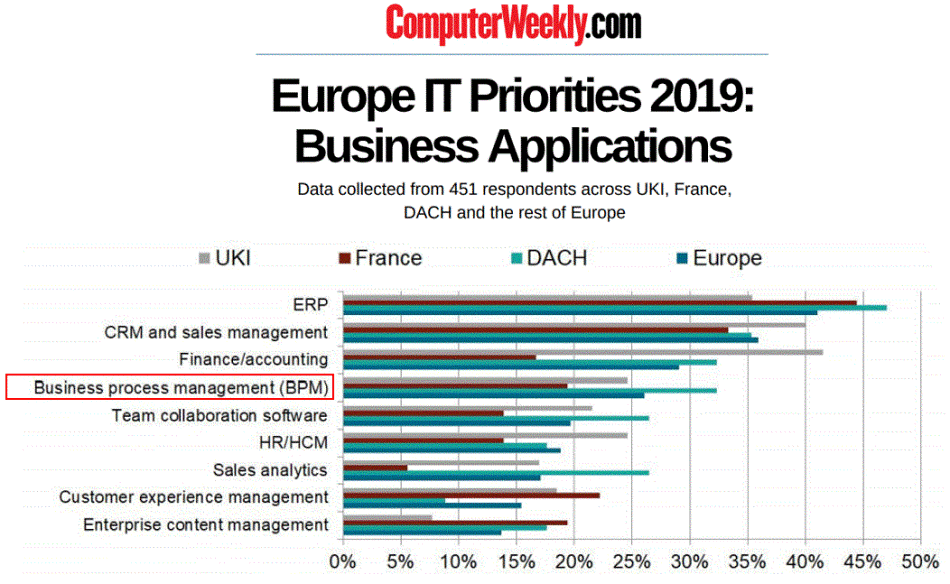 "Está previsto que el mercado de Business Process Management crezca hasta los 16 billones de US$ en el 2023. Esto supone un crecimiento del 14% anual entre el 2017 y el 2023."