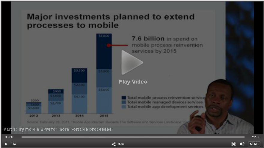 Leer mas en: http://searchsoa.techtarget.com/video/Use-mobile-BPM-to-reinvent-mission-critical-processes-part-1